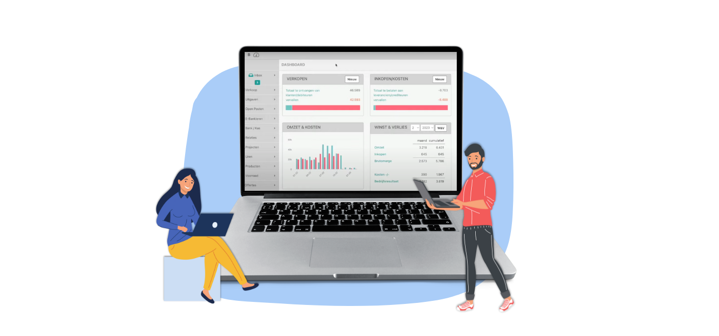 Je kunt snel factureren met Kleisteen. Het dashboard laat je doorklikken naar alle onderliggende cijfers, ik was hierdoor snel thuis in alle overzichten. Sommige van mijn klanten boeken zelf in, maar soms doe ik (bijna) alles voor hen. Mijn beheer-scherm, waar ik al mijn klanten zie en meteen kan gaan werken in hun administratie, is erg fijn.