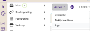 Stap 1. inladen van uw logo Icoontje links -> Layouts. Onder acties gaat u naar logo.