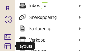 Uw bedrijfsgegevens, IBAN, BTW nummer aanpassen op de factuur? Wijzigingen in uw bedrijfsgegevens worden niet automatisch overgenomen op uw factuur. Om dit opnieuw in te stellen gaat u weer naar Linker Icoontjes menu -> Layouts.